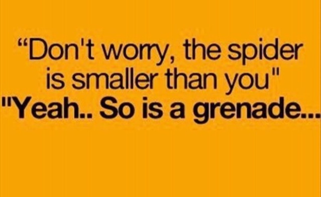 3. Ik ben bang voor spinnen. Kleine spinnen gaat nog wel, maar bij spinnen met een dik lijf en dikke poten trek ik wit weg.