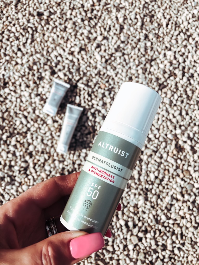 Dit hero-product van ALTRUIST beschermt tegen roodheid en pigmentatie en is de eerste specialistische formule van ALTRUIST. Deze anti-roodheid en pigment zonnebrandcrème maakt gebruik van plantaardige technologie in combinatie met hoogwaardige UV- en lichtbescherming om roodheid te verminderen en huidpigmentatie te egaliseren. De crème camoufleert roodheid, egaliseert huidpigmentatie, bevat kalmerende ingrediënten, behandelt de gevoelige huid en is geschikt voor mensen met rosacea. De crème is speciaal ontwikkeld voor de overgevoelige huid en biedt bescherming tegen zichtbaar licht, SPF50 en 5-sterren ultra UVA-bescherming.