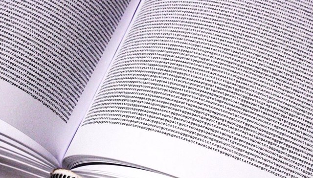 “Bij het Human Genome Project. Dit is een onderzoek van een hele grote groep wetenschappers uit vele landen. Ze hebben van 1990 tot 2003, dus 13 jaar, onderzocht hoe het menselijk DNA in elkaar steekt. Het is gelukt om het DNA van 1 persoon in kaart te brengen, om zeg maar de code van de mens te ontrafelen. En wat blijkt? Ons erfelijk materiaal is opgebouwd uit maar 4 letters: a, t, c en g. Deze staan voor adenine, thymine, cytosine en guanine en dat noemen we nucleotiden, de bouwstenen van ons DNA.