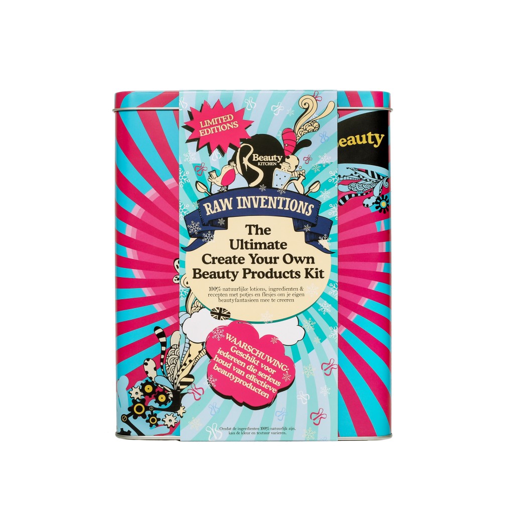 Deze DIY Beauty Kit bevat alles wat je nodig hebt om je eigen beautycreaties – lotions, crèmes, maskers en nog veel meer- te maken! Met een receptenboekje met stap-voor-stap instructies en tips hoe je met ingrediënten uit jouw keukenkastje jouw ultieme beautyrecept kunt maken. In het kleurrijke blik vind je flesjes, potjes en labels om al je creaties te personaliseren. Voor creatievelingen met een passie voor beauty! Consumentenadviesprijs: € 50,00.