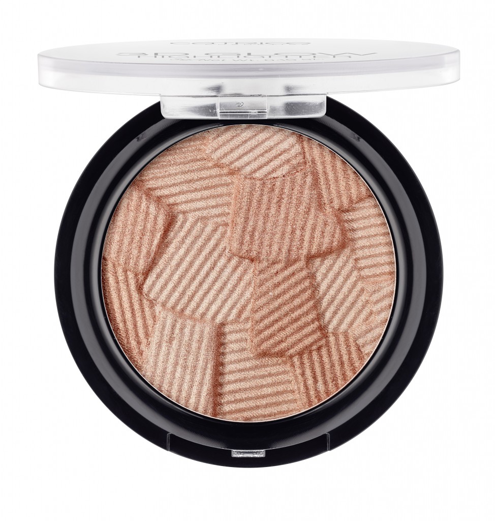 Glow it! Vijf romige highlighter texturen die op de huid transformeren in een poedertextuur met glinsterende finish. Mix de kleuren voor talloze effecten – perfect voor contouring! Consumentenadviesprijs € 3,99.