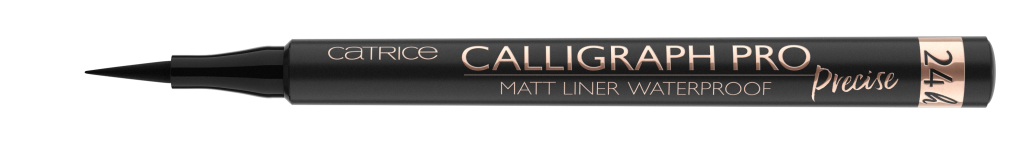CALLIGRAPH PRO PRECISE 24H MATT LINER WATERPROOF 97% is het er mee eens* : intens zwart, nauwkeurig en een goede dekking. Er is dan ook vrijwel niets wat deze professionele waterproof liner niet kan. Nauwkeurige lijnen zijn geen probleem dankzij de ultradunne punt, de pen glijdt moeiteloos over het ooglid en de matte kleur blijft 24 uur zitten. De extreem hoge kleurafgifte blijft zelfs over oogschaduw en andere make-up zichtbaar. Adviesprijs € 3,59