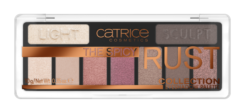 THE SPICY RUST COLLECTION EYESHADOW PALETTE De kleur-update waar iedereen op wachtte: de Bestseller Collectie heeft een nieuw familielid. Met warme kleuren en een mix van metallic, parelmoer en matte finishes is het eenvoudig om verschillende looks te creëren. De hoog gepigmenteerde trendkleuren zijn geïnspireerd op pittige, exotische kruiden. Het palet bestaat uit negen tinten die harmonieus gecombineerd kunnen worden. Adviesprijs € 4,99