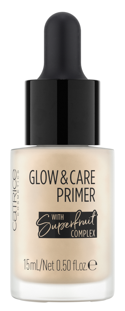GLOW & CARE PRIMER Een stralende glans en verzorging dankzij één product. Deze multi getalenteerde primer bevat een superfoodcomplex met goji, açai en granaatappelolie. Het hydrateert de huid en verkleint poriën zichtbaar. De vloeibare, zachte textuur heeft een frisse geur en werkt met een pipet. Met slechts een paar druppels creëer je een prachtige, satijnachtige glow. Adviesprijs € 5,59