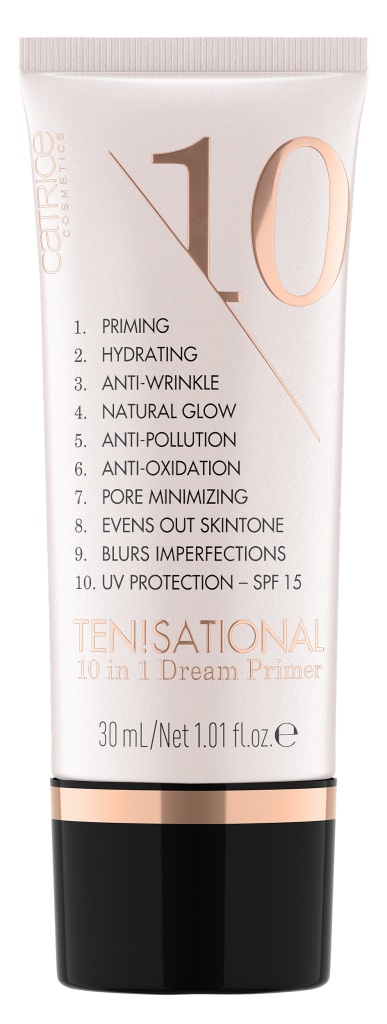 TEN!SATIONAL 10 IN 1 DREAM PRIMER #wokeuplikethis. Deze all-in-one primer combineert tien eigenschappen in één product. Het is ontwikkeld om direct te perfectioneren en bevat multi beschermende eigenschappen. De lichtgewicht textuur bereidt de huid voor, verdoezelt imperfecties en maakt de teint egaal. Poriën worden optisch verkleind en de zichtbaarheid van rimpels verzacht. Deze Dream Primer hydrateert de huid en geeft haar een natuurlijke glans. Dankzij de actieve ingrediënten en SPF 15 beschermt de primer ook tegen vervuiling en vrije radicalen.* Adviesprijs € 5,99