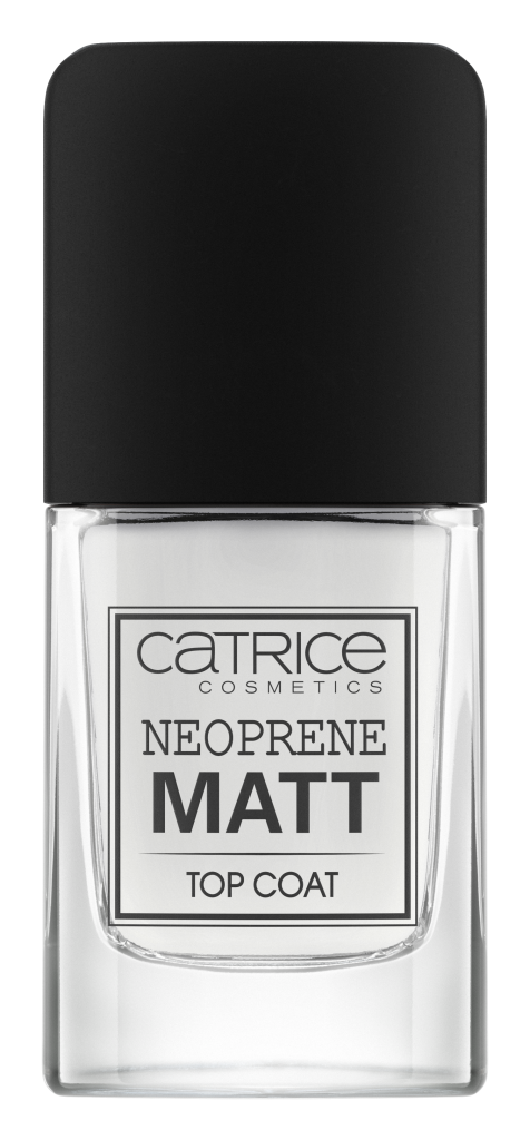 Een warm welkom voor het nieuwste familielid in de CATRICE Top Coat lijn: de NEOPRENE MATT Top Coat! Eenmaal aangebracht op gelakte nagels heeft dit product een semi-matte soft touch finish. De melkachtige, transparante en sneldrogende formule is vegan en langhoudend. Het waaiervormige kwastje maakt het aanbrengen supereenvoudig.