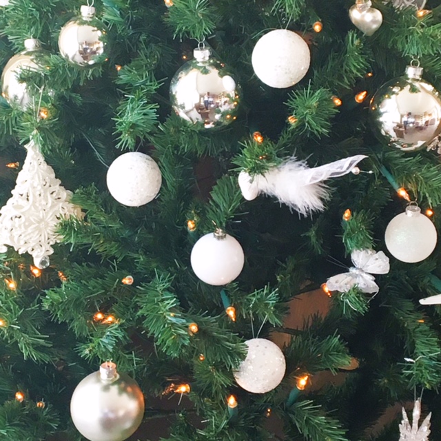 Wit met zilver, in beide bomen. Dat vind ik gewoon het mooist.