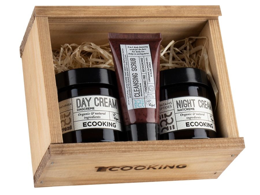 De limited edition Day & Night Kit (€40,-) van Ecooking biedt de perfecte basis voor dagelijkse gezichtsverzorging. Deze kit is enorm voordelig want de kit bestaat uit de Ecooking Day Cream en je krijgt een fullsize Ecooking Night Cream en een 20ml Cleansing Scrub cadeau.