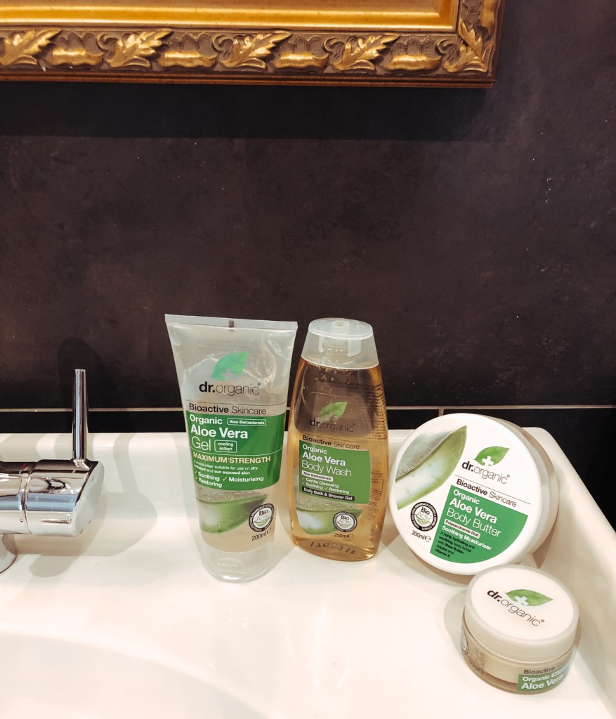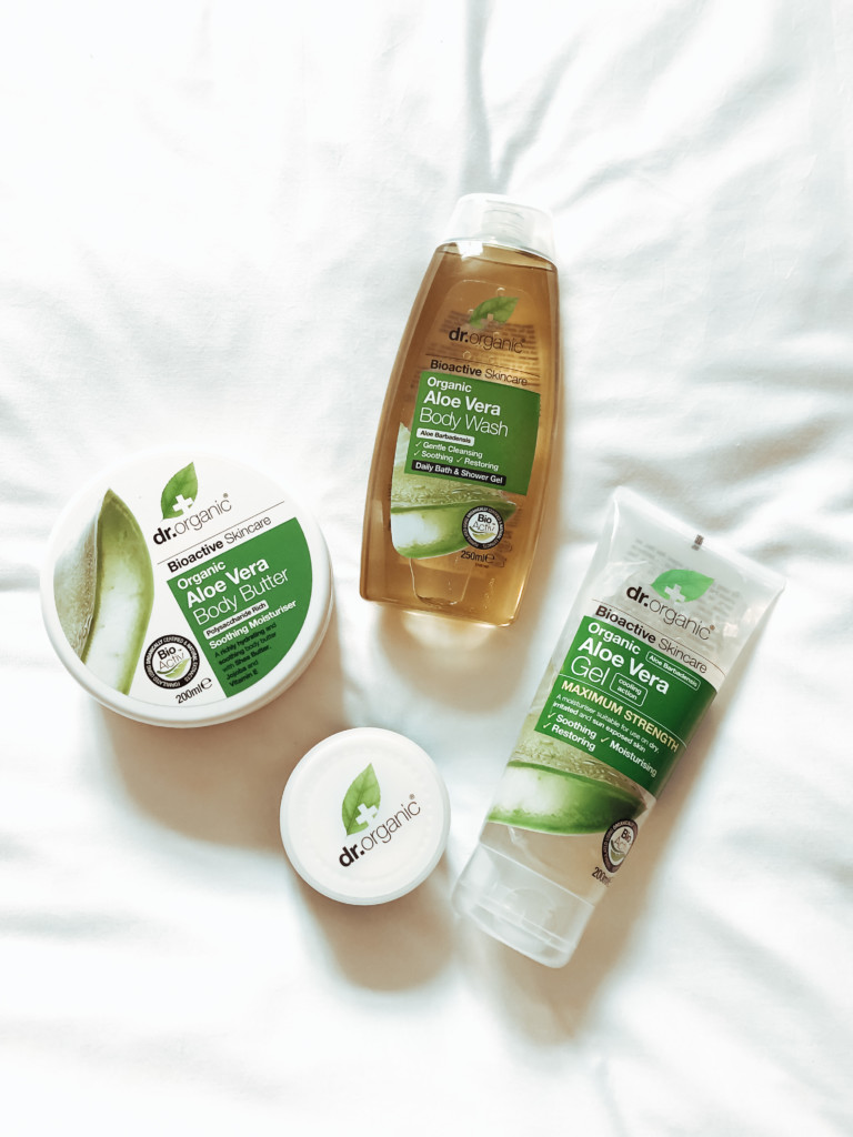 De complete Dr Organic Aloe vera lijn, verkrijgbaar in de Benelux: