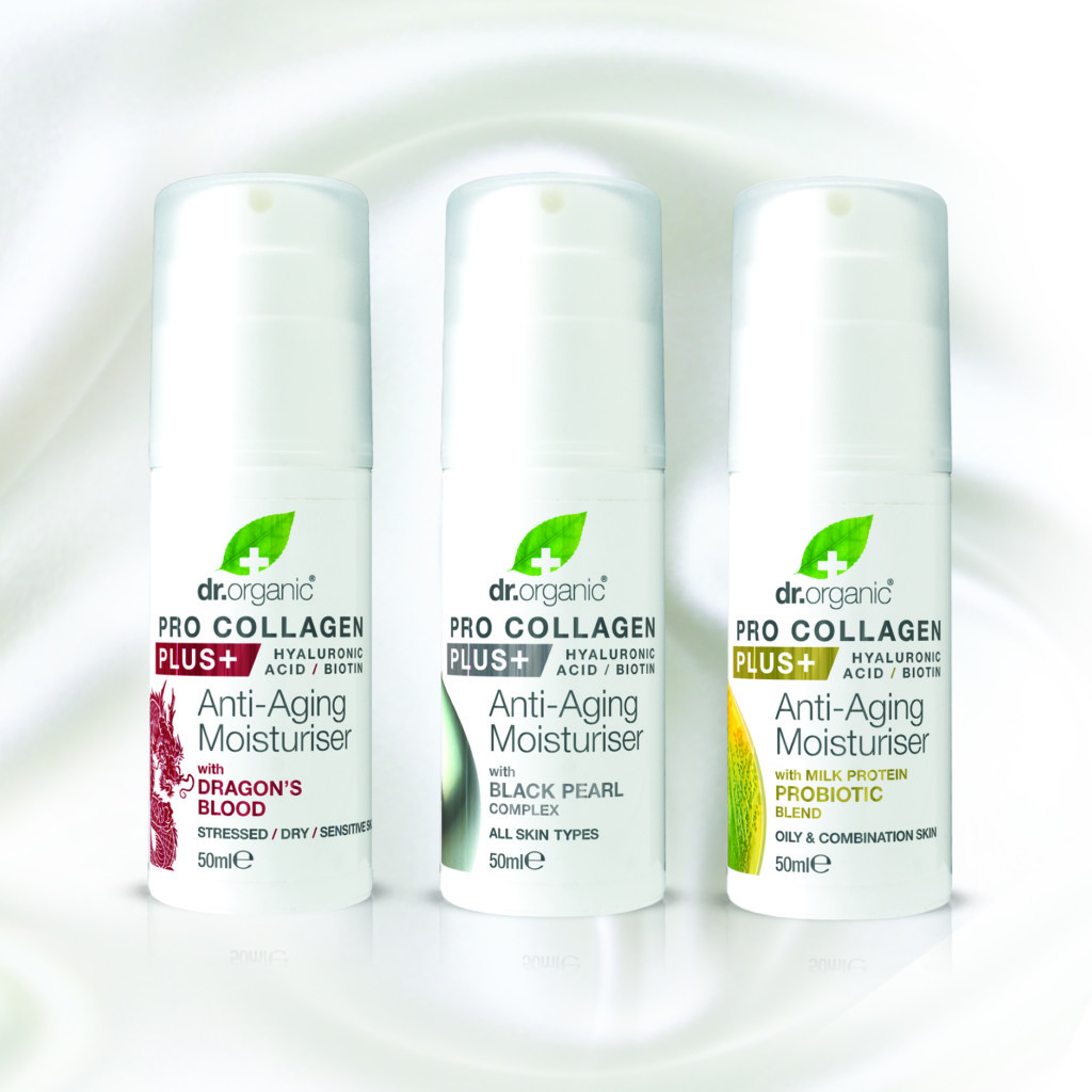 Dr Organic Pro Collagen Serum Moisturisers € 22,99 (50ml) zijn verkrijgbaar bij de winkels van Holland & Barrett en online via o.a. hollandandbarrett.nl en plein.nl.