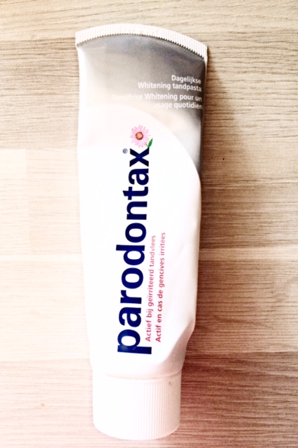 Parodontax Whitening Tandpasta. Finally my trusted Parodontax toothpaste, all variants of Parodontax work for my teeth very nice (read; quickly plaque formation), but I like to choose for a toothpaste that also keeps my teeth white. Some find these toothpaste may be too intense, but I love the “salty” flavor, it gives me the feeling that my teeth are super clean after brushing.