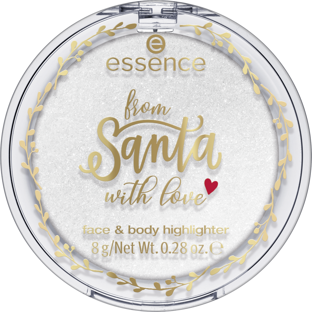 Glitter, glinstering, sterrenstof – Kerstmis is magisch! Waar je ook kijkt, alles schittert en glanst. Metallic en glitter zijn een must tijdens de feestdagen, want er bestaat niet zoiets als teveel glamour op al de aankomende kerstfeestjes. Van midden november tot en met eind december heeft de essence Trend Edition “from santa with love” alles wat je nodig hebt voor een prachtige look: van gezichts- & bodyhighlighters tot een oogschaduwpalet en nagelstickers met een kerstachtig design. En omdat Kerstmis de tijd van de liefde is, geeft essence inspiratie voor lieve cadeau’s met deze Trend Edition. De transparante beautykwasten met dansende glittermotieven of de handwarmers die ervoor zorgen dat je handen niet bevriezen in je favoriete winterjas, zullen niet alleen je ogen doen stralen op kerstavond.