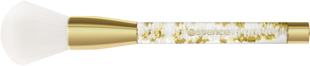 Het is nog nooit gemakkelijker geweest blush en andere poederproducten aan te brengen voor een perfecte kerstlook! De zachte haren van de poederkwast voelen fijn aan op de huid en blenden poedertexturen optimaal. Een speciaal hoogtepuntje: wanneer geschud, bewegen de kleine sneeuwvlokken en gouden sterren in de transparante steel van de kwast.