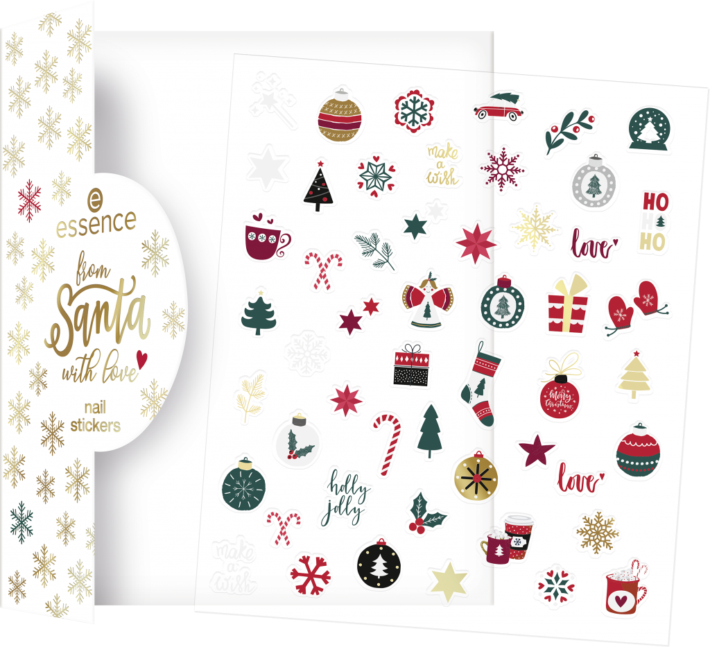 De essence nagelstickers zijn beschikbaar in een modern design voor een creatieve en originele kerstmanicure. Nu kan iedereen een nagelspecialist zijn en hun nagels met kleine sterren of kerstbomen versiersen bovenop hun nagellak.