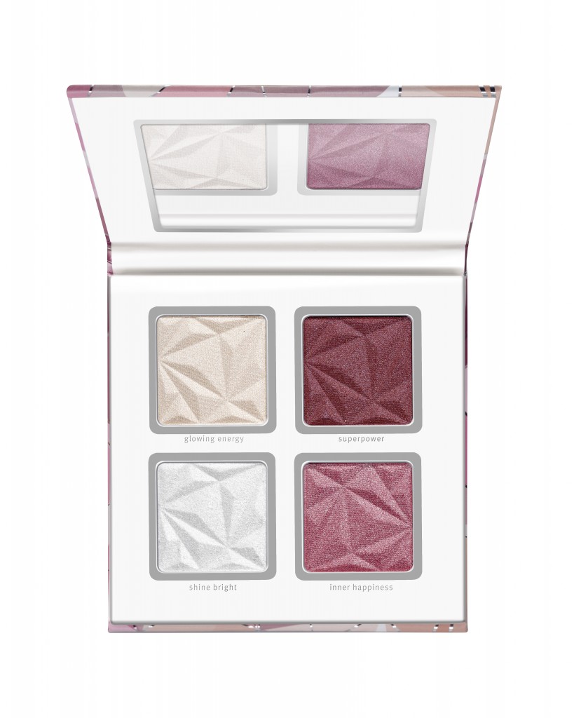 Dit oogschaduwpalet geeft je je dagelijkse portie positieve vibes en laat je ogen stralen als kristallen. Het palet bestaat uit acht hoog gepigmenteerde glanzende kleuren en één matte tint. De zachte textuur is moeiteloos aan te brengen met een penseel of je vingers en is éénvoudig te blenden. Of je nu kiest voor rosé goud, groen, blauw or iriserend wit – dit palet laat je ogen stralen. Adviesprijs € 5,99