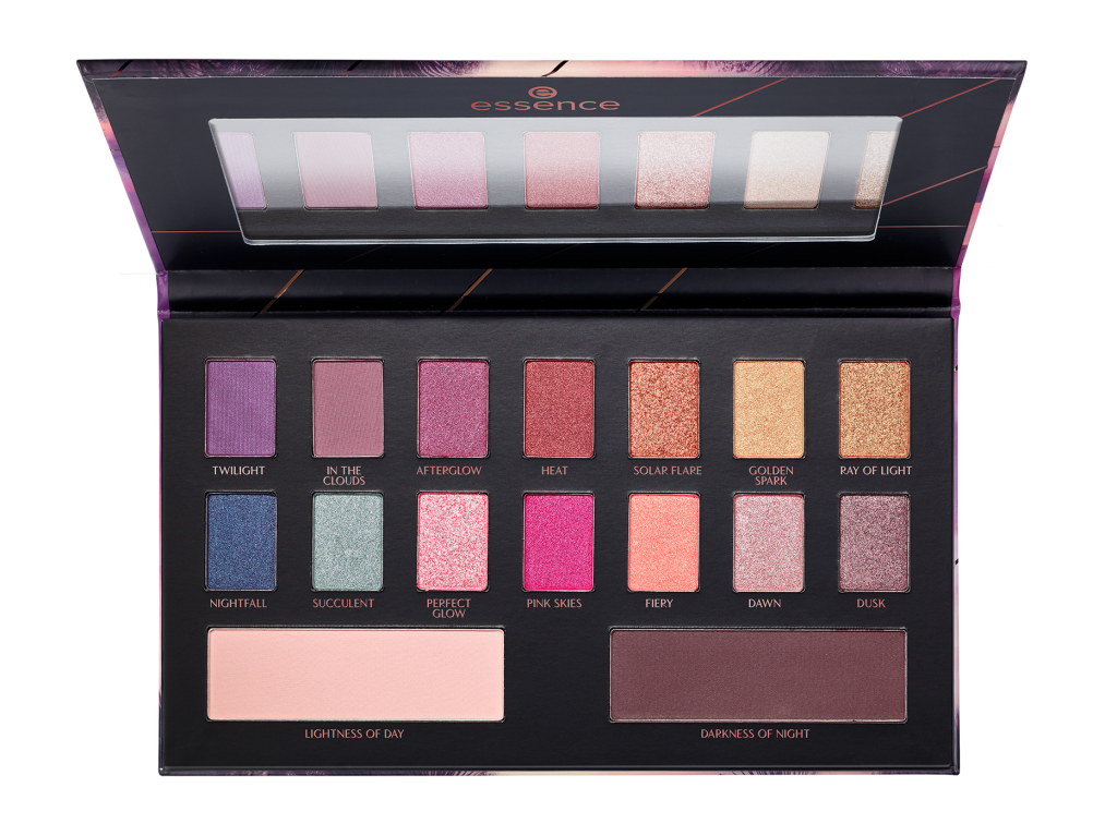 Dit palet met hoog gepigmenteerde oogschaduw is geïnspireerd op de kleuren van een zonsondergang in de woestijn. Het palet bevat 14 tinten met matte, glanzende en metallic effecten in goud, roze en paars. De selectie wordt ondersteund door een lichte tint en een donkere matte tint, die gebruikt kunnen worden om je look zachter of juist expressiever te maken. Dankzij de zachte textuur zijn alle kleuren makkelijk te blenden. De kwalitatieve kartonnen verpakking inclusief spiegel maakt de uitstraling van het palet compleet. Adviesprijs € 9,99