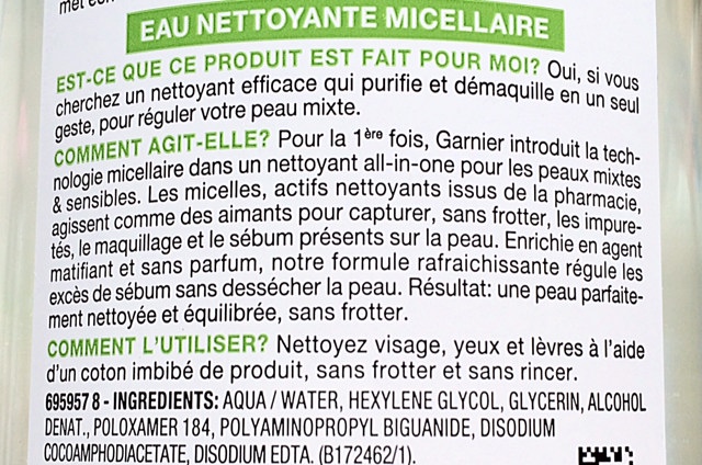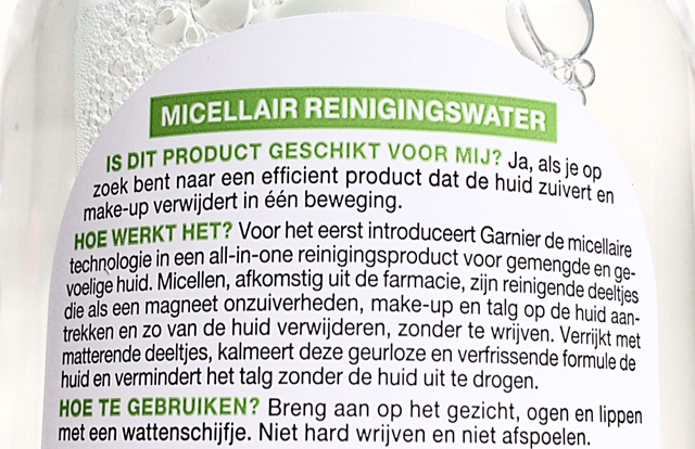 Begin dit jaar is de tweede variant micellair reinigingswater van Garnier op de markt gekomen, deze is speciaal geschikt voor de gevoelige en gemengde huid. Dit micellair reinigingswater reinigt de huid wat dieper dan die met de roze dop en bevat matterende deeltjes. Waar de fles met de roze dop de huid verzacht, heeft deze met de groene dop juist een kalmerende werking.