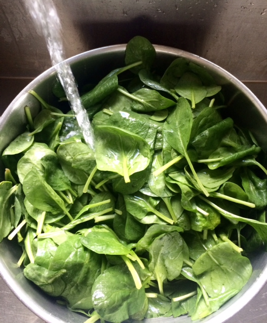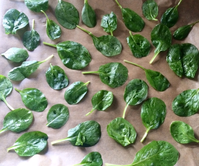 Verwarm de oven voor op 120 graden, was de spinazie grondig en dep de bladeren daarna goed droog.