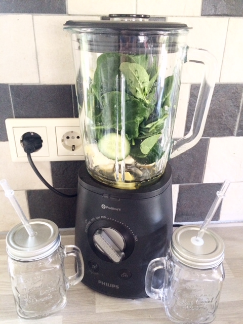 Groene Smoothie Met KurkumaIk gebruik trouwens een blender van Philips, de Philips Avance HR2095/90 Blender, deze heeft een grote glazen kan van 2 liter, veel vermogen (700W motor) en blend alles zonder stukjes achter te laten. Deze blender is in 2014 het beste uit de test van de consumentenbond gekomen en ik ben er erg blij mee.