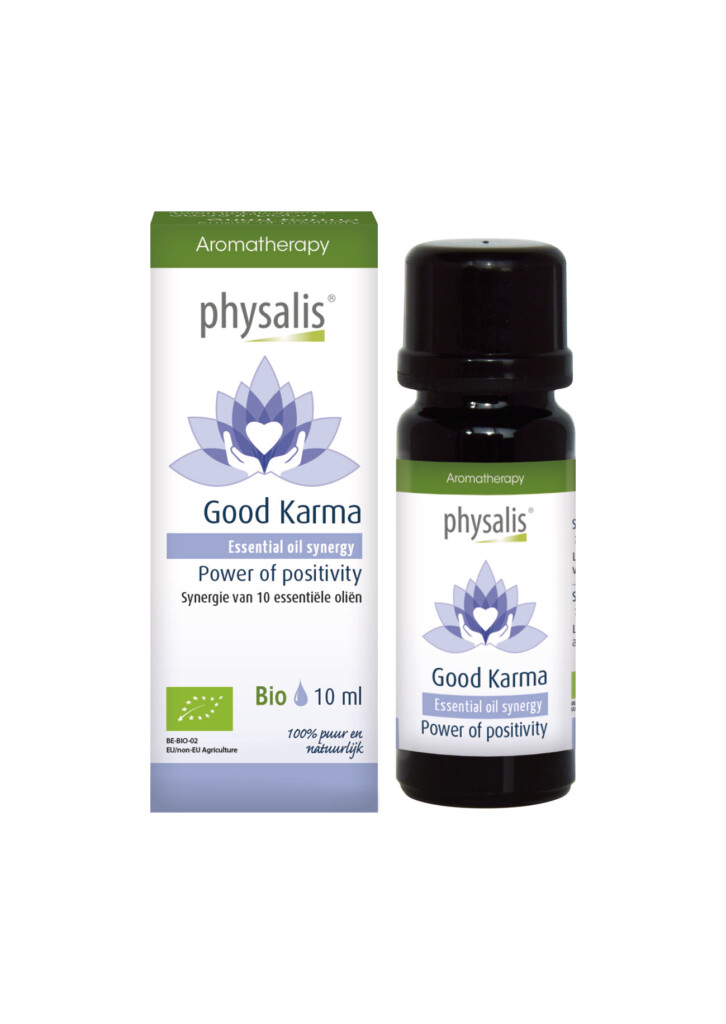 De Good Karma synergie van Physalis is samengesteld uit verkwikkende aroma’s die zorgen voor een gerust hart en positieve gedachten. Deze synergie bevat 10 biologische essentiële oliën met o.a. geranium, ylang ylang en bergamot.