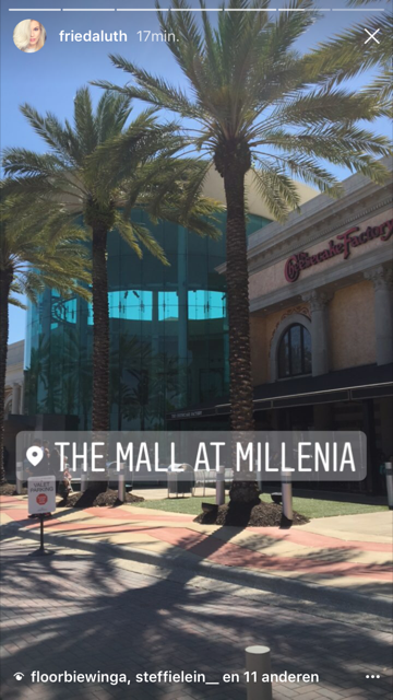 Onderweg naar het vliegveld nog even gestopt bij The Mall At Millenia. Een hele grote Mall met ongeveer 150 winkels, een food court en verschillende luxe eetgelegenheden. De beste winkels zitten hier, denk aan Macy’s, Bloomingdale’s, MAC Cosmetics, Sephora, Victoria’s Secret, Chanel, Louis Vuitton, Gucci, Prada, Bulgari en Cartier.
