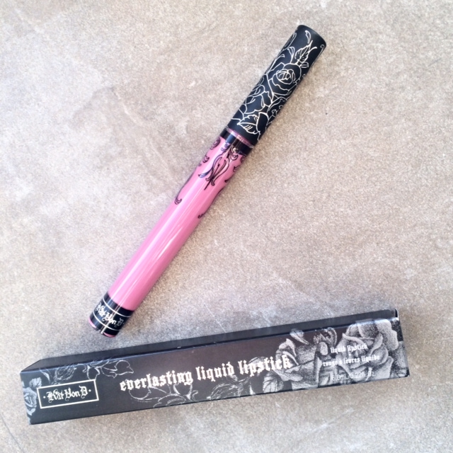 Ik heb de kleur Lovesick, een prachtige roze kleur met een koele ondertoon dat wordt omschreven als “mauve nude”. Deze liquid lipstick is er in 28 verschillende kleuren, is heel zacht en glijd gemakkelijk over de lippen, de kleur is in één goed en dekkend en heeft direct een matte finish. Het enige nadeel is dat een liquid lipstick een beetje droog kan aanvoelen op je lippen, zo ook deze van Kat Von D, gebruik voordat je de liquid lipstick aanbrengt een verzorgende lippenbalsem en het probleem is opgelost.