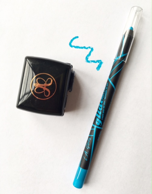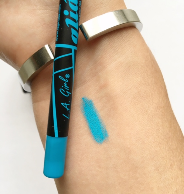 Black eyeliner pencil is something I will not use that fast on my waterline because my eyes will get to small, sometimes I use a cream colored eyeliner because this color makes my eyes bigger and gives them a bright glance. Nowadays different brands have also other beautiful colors as an eyeliner for the lash line and water line. In particular the color blue makes my blue eyes pop and this color is quite fashionable this year as an eye makeup. I decided to test this color from the L.A. Girl brand.