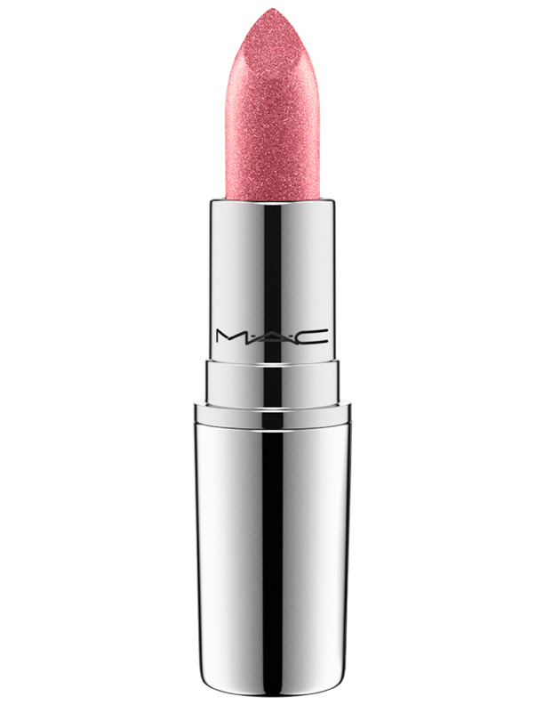 Het cult product dat MAC Cosmetics een fenomeen maakte, nu in een glanzende metallic verpakking. Dit is de kleur ‘a wink of pink’, een midtone rose met bronzen gouden glans. Lipstick € 19,50.