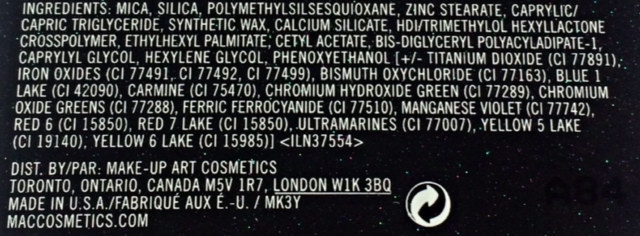 Above the ingredients of the MAC Prep + Prime Transparent Finishing Powder pressed.