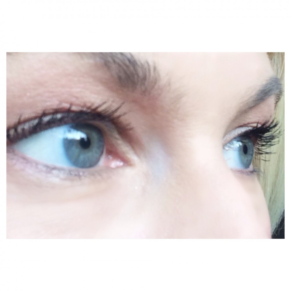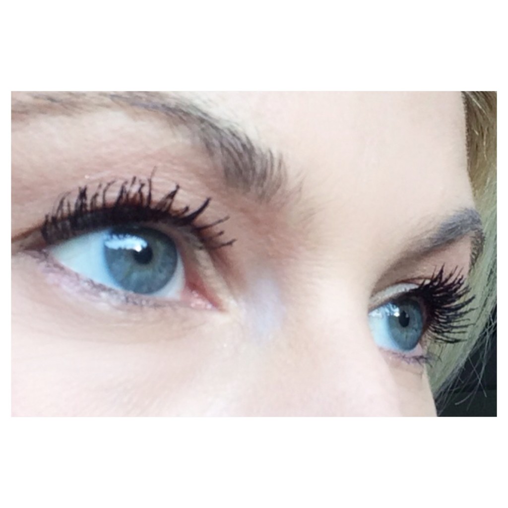 Op de één of andere manier willen de wimpers op mijn rechteroog (voor jullie links) nooit helemaal meewerken zoals je ziet, die gaan altijd de verkeerde kant op. Dat ligt dus aan mijn wimpers en niet aan de mascara, want links (voor jullie rechts) gaat het wel goed.