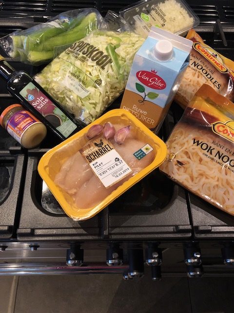 - Ik heb voor noodles gekozen die je direct uit de verpakking kunt wokken, anders kook je de noodles eerst gaar.