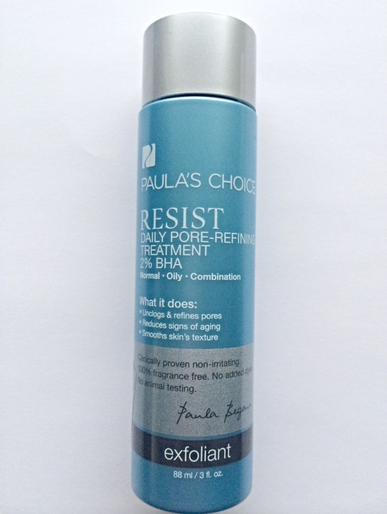 Exfoliant: Paula’s Choice Resist Daily pore-refining treatment 2% BHA.