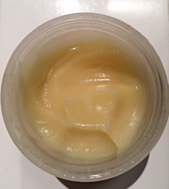 Stap 1. de vitamine c/peptide kristallen. Een gele substantie wat heerlijk fris naar sinaasappels ruikt.
