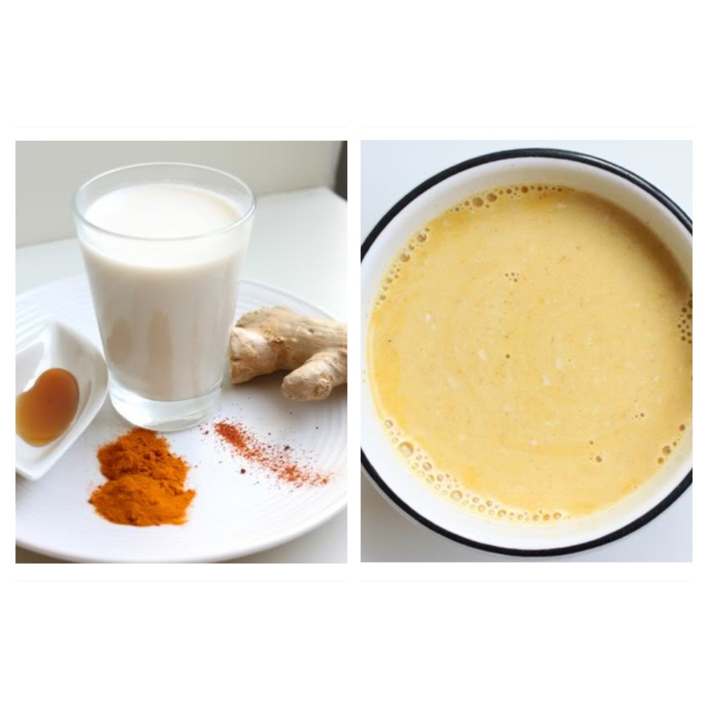 Tea: How about this creamy Turmeric tea by Mark’s Daily Apple. Turmeric has a slightly bitter taste, but the addition of coconut milk and honey the tea gets a mild flavor.