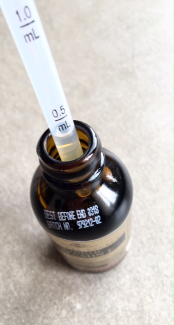 De druppels haal je uit het flesje met een pipetje en is daarmee heel makkelijk te doseren.