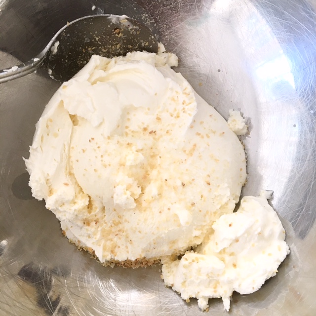 Doe ondertussen de mascarpone in een kom en voeg er wat zout en gemalen knoflook aan toe. Roer alles door elkaar.
