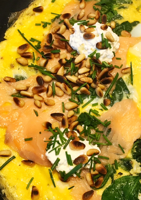 • Meng de eieren door de spinazie en bak het samen tot een omelet.
