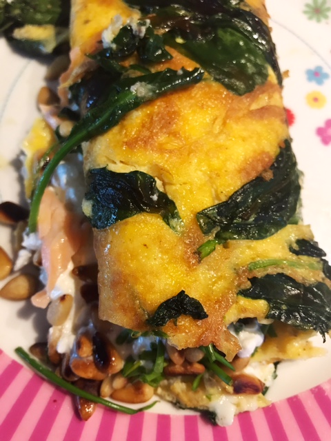 - Mix the eggs through the spinach and bake it together into an omelet.