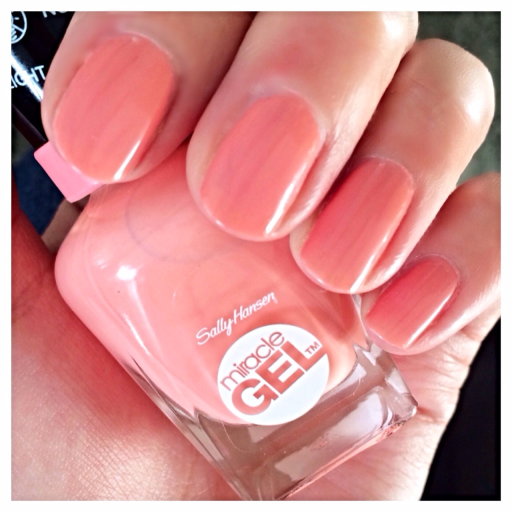 Nu is er de Sally Hansen Miracle Gel. Een soort thuismanicure. Een gellak waarbij je geen UV lamp nodig hebt, maar die wel lang blijft zitten. Het zou 2 weken moeten zitten, maar dat red ik echt niet. Wel blijft het een kleine week mooi zitten zonder beschadigingen. Dan moet je wel 2 lagen met lak aanbrengen en daarna de Miracle Gel Topcoat gebruiken. Breng de Topcoat voorzichtig aan want het heeft de neiging wat lak mee te nemen van je nagels. Let er ook op dat de eerste laag goed droog is voordat je de tweede laag aanbrengt, anders krijg je strepen.