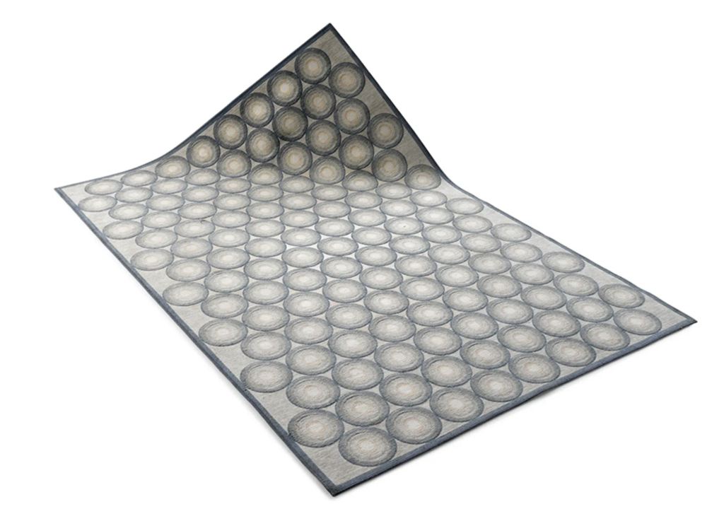 Een hele nieuwe look voor de woonkamer voor je moeder? Neem lekker wat katoenchenille, een mooie pluk wol en een behoorlijke dosis seventies. Dat zijn de juiste componenten voor Punto, een hartveroverend karpet ontworpen door Claire Vos. Punto verwent je met een rijke hoeveelheid fraaie cirkels die samen een mooi geheel vormen. De ideale basis voor een woonkamer die bolstaat van de sfeer. Afmeting kleed 170×250 cm Prijs €550