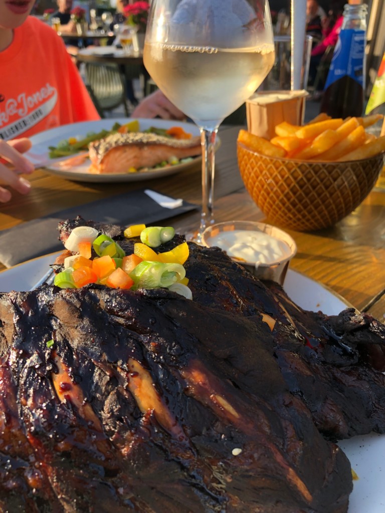 Nadat Job een duik in het zwembad heeft genomen gaan we in de avond heerlijk op het terras zitten bij het restaurant van Vakantiepark Koningshof. Deze spareribs waren verrukkelijk! Naast het restaurant en de receptie bevindt zich de Park Shop, hier hebben we de volgende ochtend broodjes gehaald, die iedere ochtend vers worden gebakken.