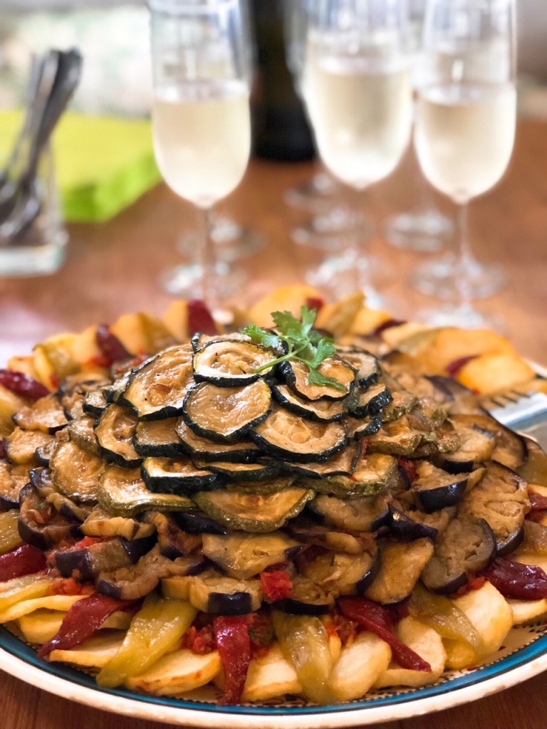 We begonnen deze fijne middag met bubbels. Nuriye had zelf al een aantal overheerlijke Turkse lekkernijen klaargezet voor ons. Zo konden we tijdens het koken genieten van heerlijk Turks brood met Cacık (de Turkse variant van de bekende Griekse tzatziki), Kizartma (diverse gebakken groente, veganistisch) en kippenvleugels in Turkse marinade.