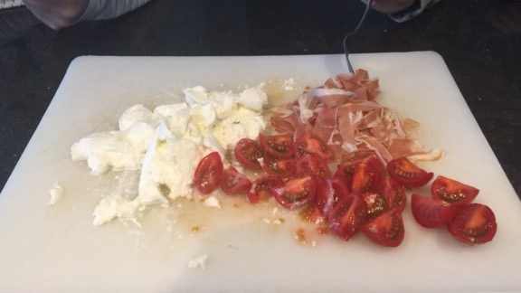 As a snack we all love tomato, mozzarella and parma ham. Normally I sprinkle lots of pepper over it but the kids don’t like that so much.